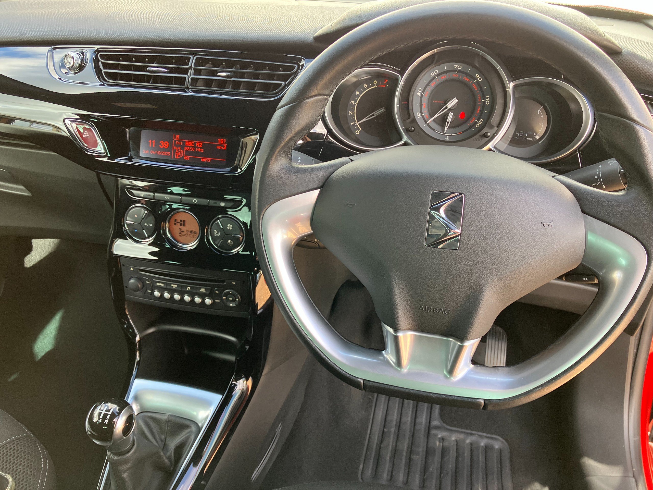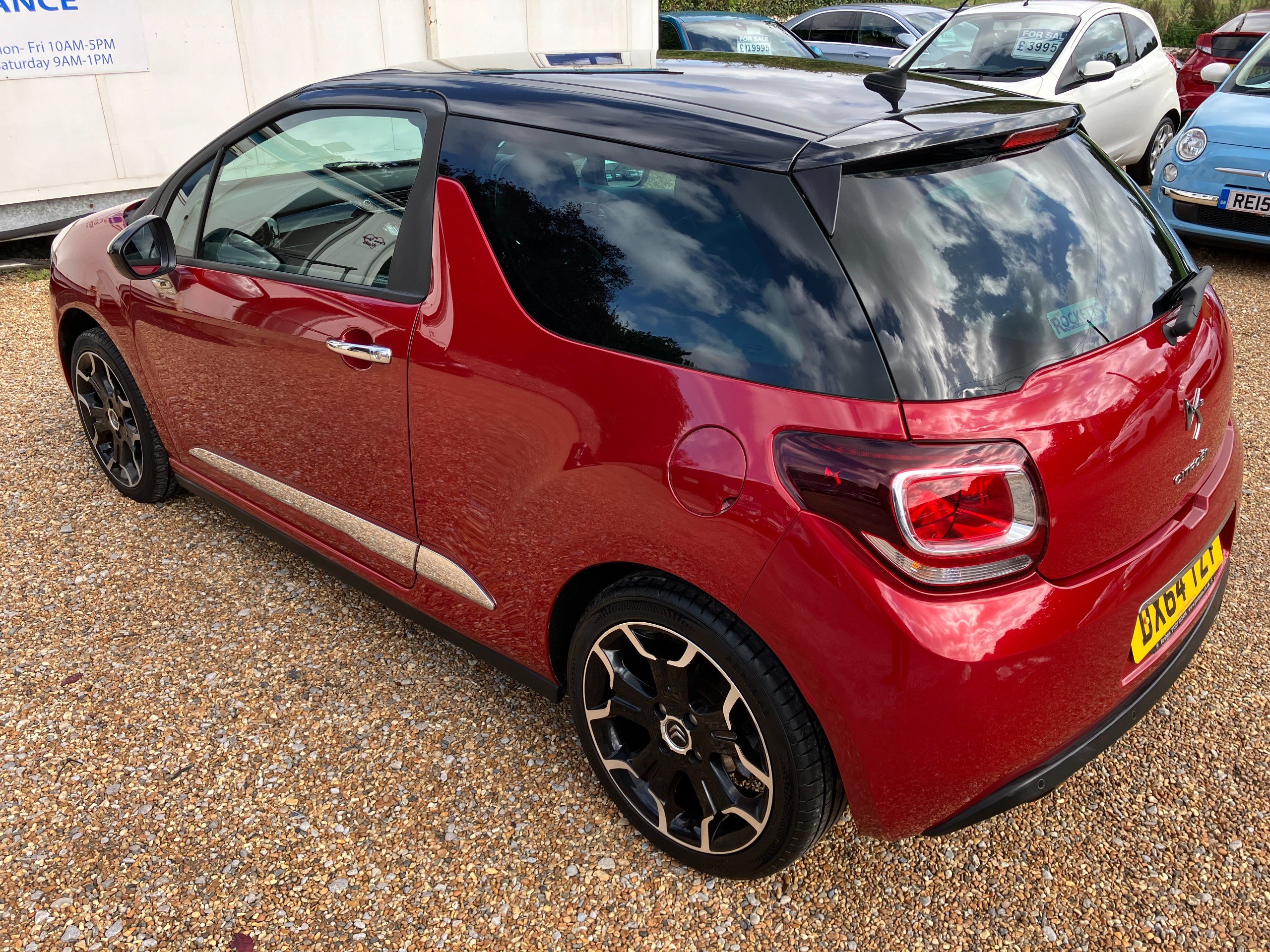 EXTERIOR: Red paintwork, colour coded bumpers. Black roof and mirrors. 17" DS3 alloy wheels. Some minor marks, consistent with age etc.